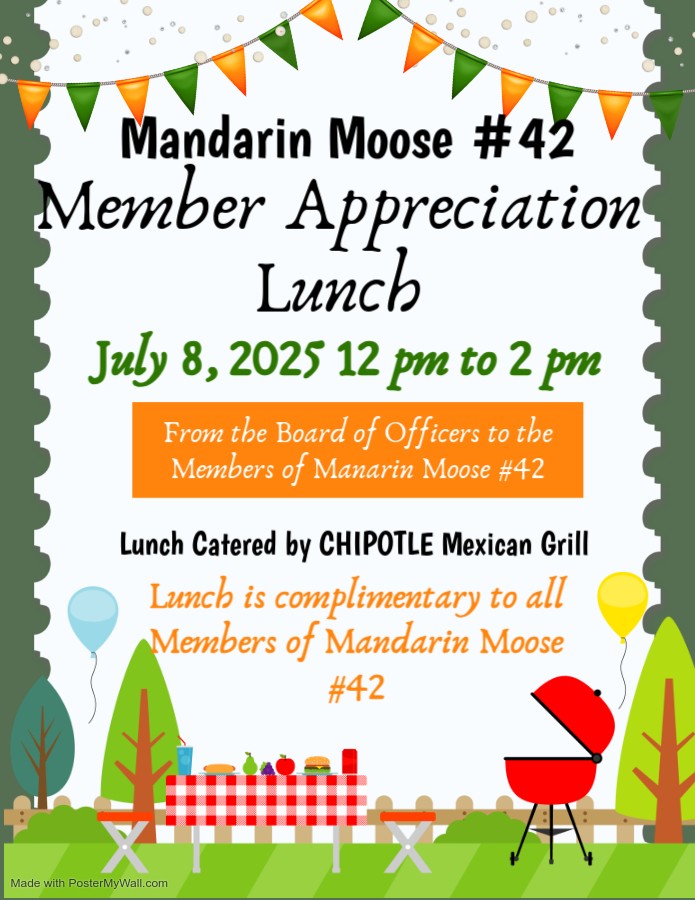 Please reach out to learn more about Mandarin Moose Lodge #42, we’d love to hear from you!